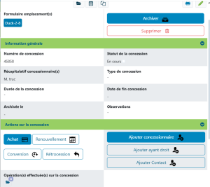 - Vous pouvez désormais utiliser un assistant rapide pour saisir vos nouvelles concessions. Cela concerne uniquement les emplacements disponibles, c’est-à-dire sans concession ni inhumés.